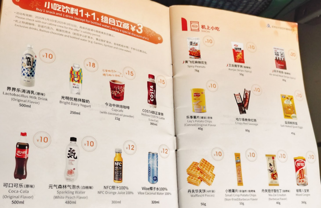 私が、2025年の関空~中国便で食べた