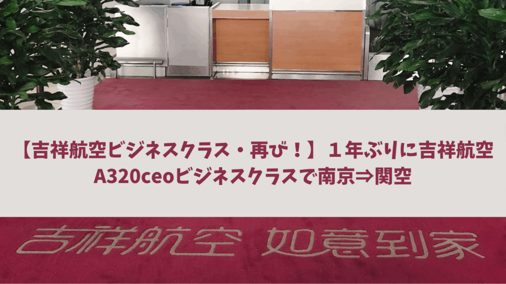 【吉祥航空ビジネスクラス・再び!】1年ぶりに吉祥航空 A320ceoビジネスクラスで南京⇒関空
